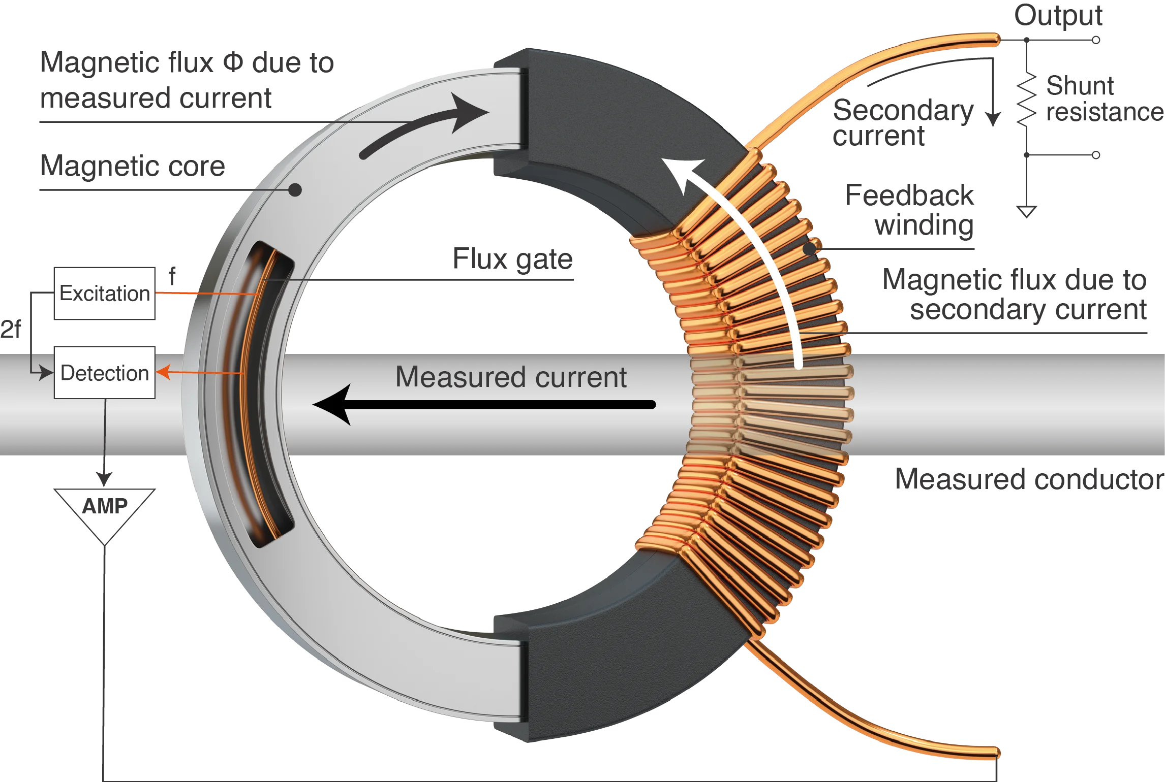 Fig. 7: Zero-flux sensor with fluxgate: Again, two measurement principles