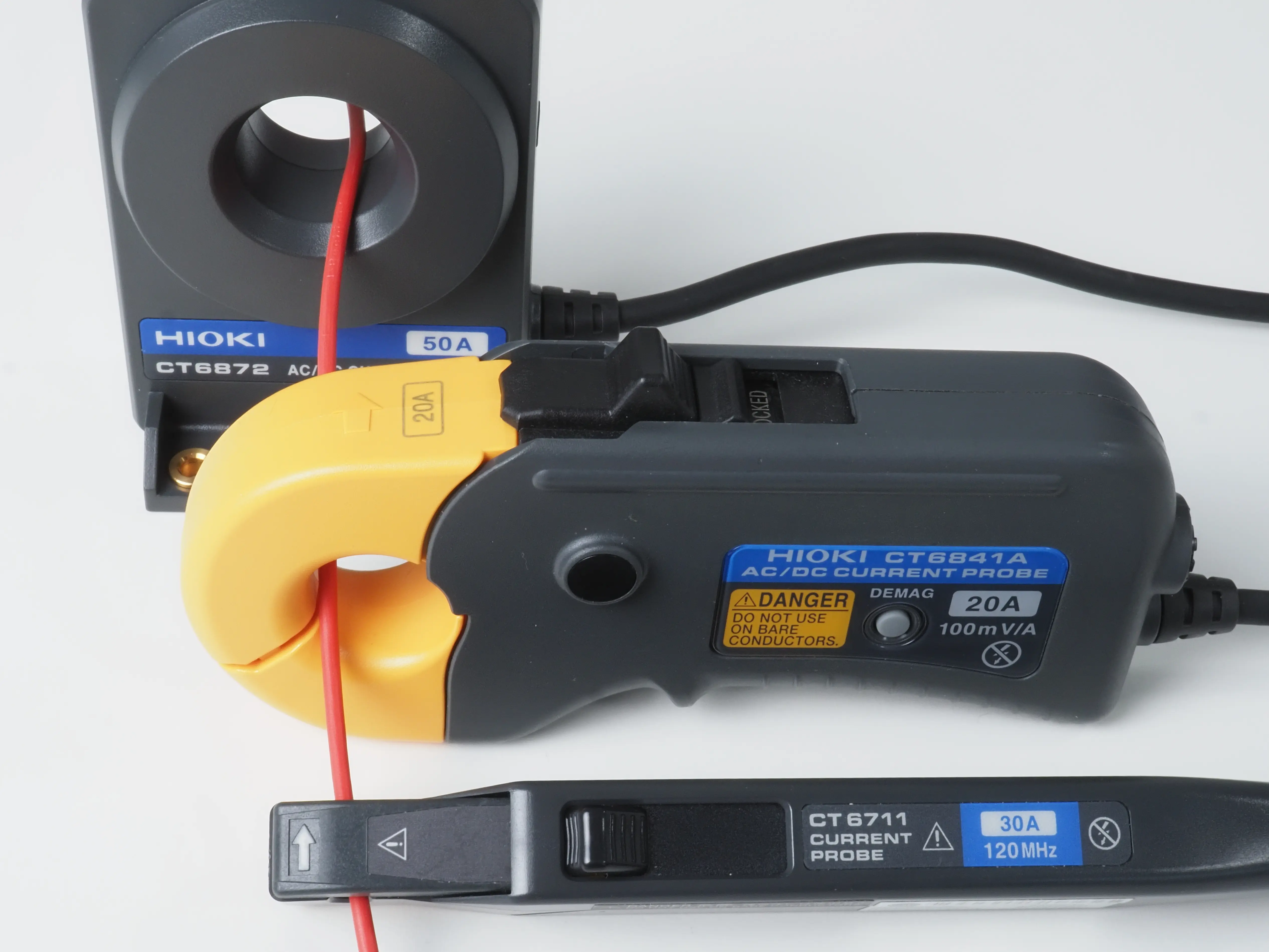 - HIOKI’s CT6711 is the flagship model in the portfolio of wideband zero flux AC/DC current probes. It is hall sensor based, features a bandwidth of 120MHz, is typically used with oscilloscopes or recorders, and has three current ranges to choose from: 0.5A, 5A or 30A. With our 50W bulb powered by 12V the 5A range is perfect for our measurement