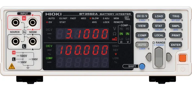 Another reason arises when comparing the accuracies of the two measurement methods: One of the most widely used battery testers in the production environment is HIOKI‘s BT3562A. This battery tester’s basic accuracy for resistance measurement is 0.5 %. This is a very good value for an AC resistance meter. A DC resistance meter like the RM3545, however, has a basic accuracy of 0.006 %.