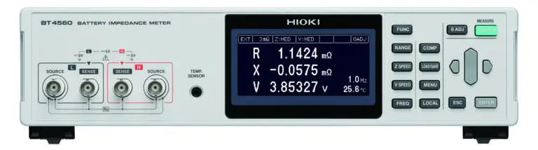 HIOKI‘s BT4560 battery impedance meter is also ideally suited for these measurements, because the formation of the eddy currents described above is minimised during the measurement by applying a 4-terminal-pair measurement.