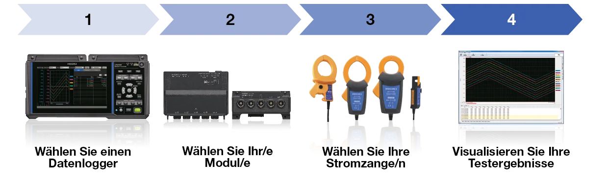 HIOKI bietet außerdem eine Vielzahl weiterer Stromsensoren und -zangen für den LR8450 an, die sich für jede Anwendung eignen. Kombinieren Sie unterschiedliche Sensoren und Zangen entsprechend Ihrer Testanforderungen von 2 A bis 6000 A⁴.