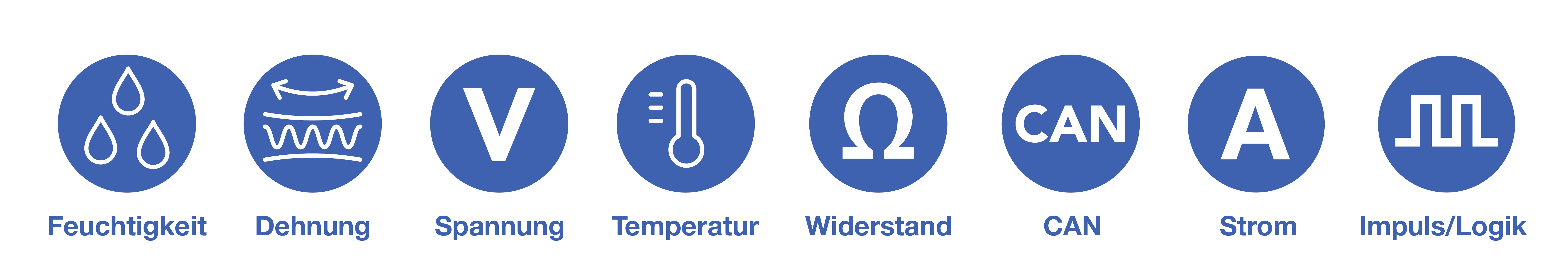 - Messgrößen: Spannung, Strom, Temperatur (Thermoelemente, RTDs), Widerstand, Feuchtigkeit, Dehnung, Vibration, CAN- & CAN-FD Ein-/Ausgang
